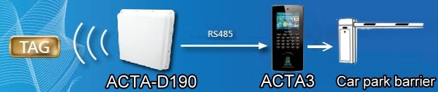 ACTA-D190-UHF has a built-in high sensitivity 8dbi antenna, and by using an RS485 serial communication interface bits interface to work with ACTAtek3 device, it can remotely connect and communicate with terminal equipment.