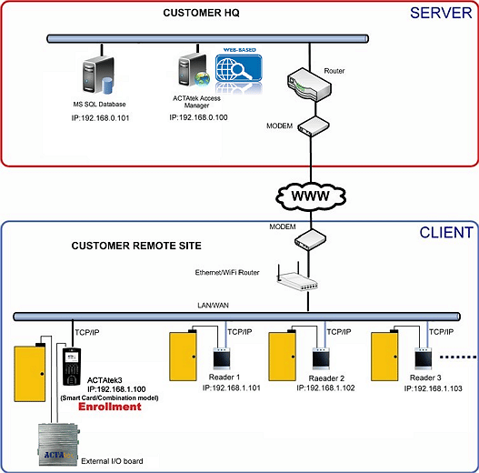 Offering keypad PIN (Password), Smart Card and biometric Fingerprint Authentication options, the ACTAtek combination unit is used in both security (access control) and workforce management applications.