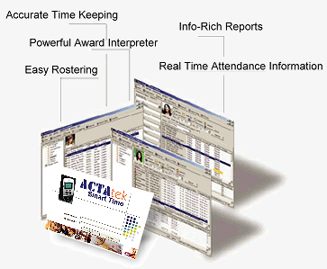ACTAtek SmartTime is a full-featured enterprise-level Time and Attendance software incorporating labor cost management and job rostering facilities in one solution. ACTAtek Smart Time converts the raw data into useful information for managers to make decisions.