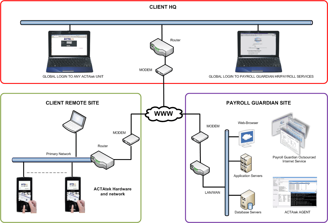 ACTAtek has partnered with Payroll Guardian (www.payrollguardian.com) to provide a complete solution for time and attendance and payroll applications. Using the ACTAtek platform described below, Payroll Guardian has installed this solution with clients in the hospitality, retail, and enterprise vertical markets.